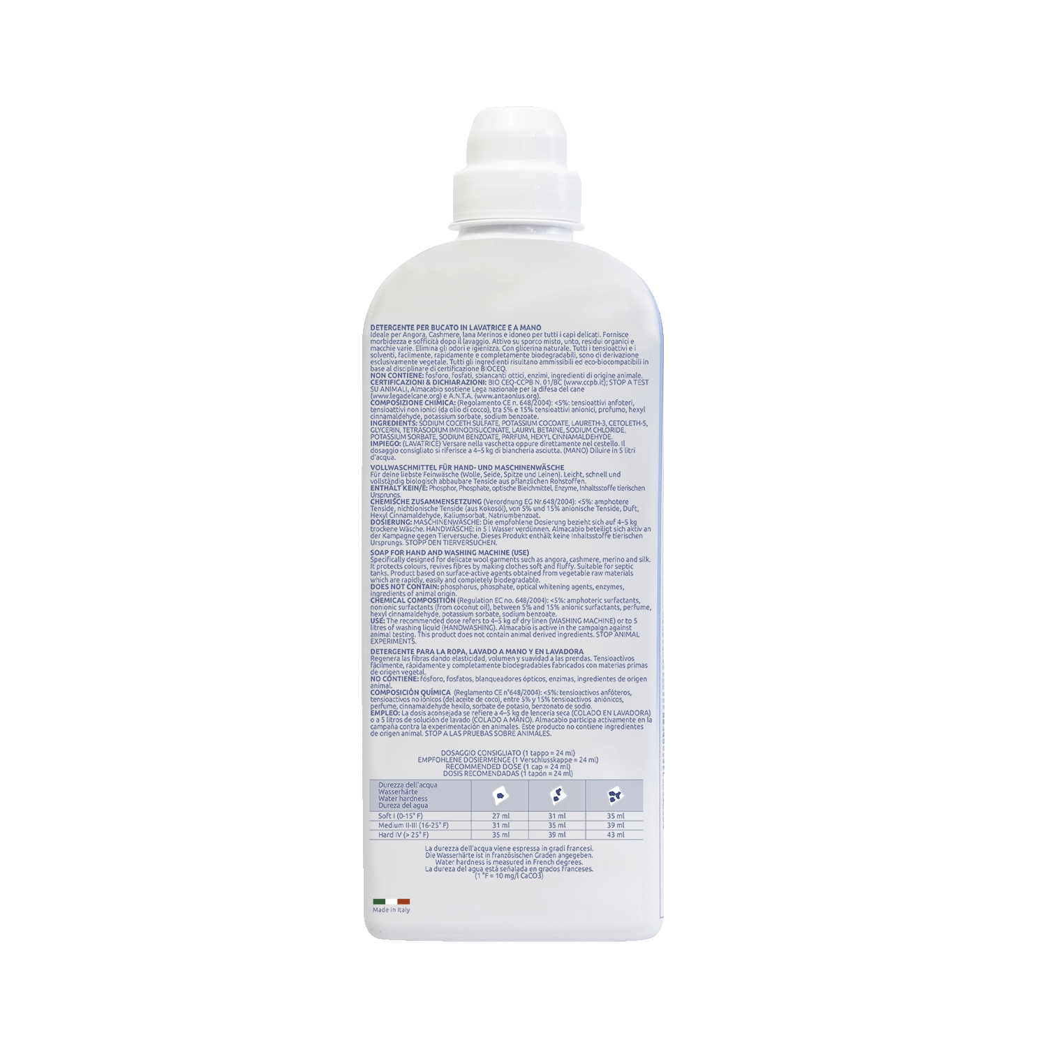 Detergente liquido per angora e cashmere in lavatrice e a mano