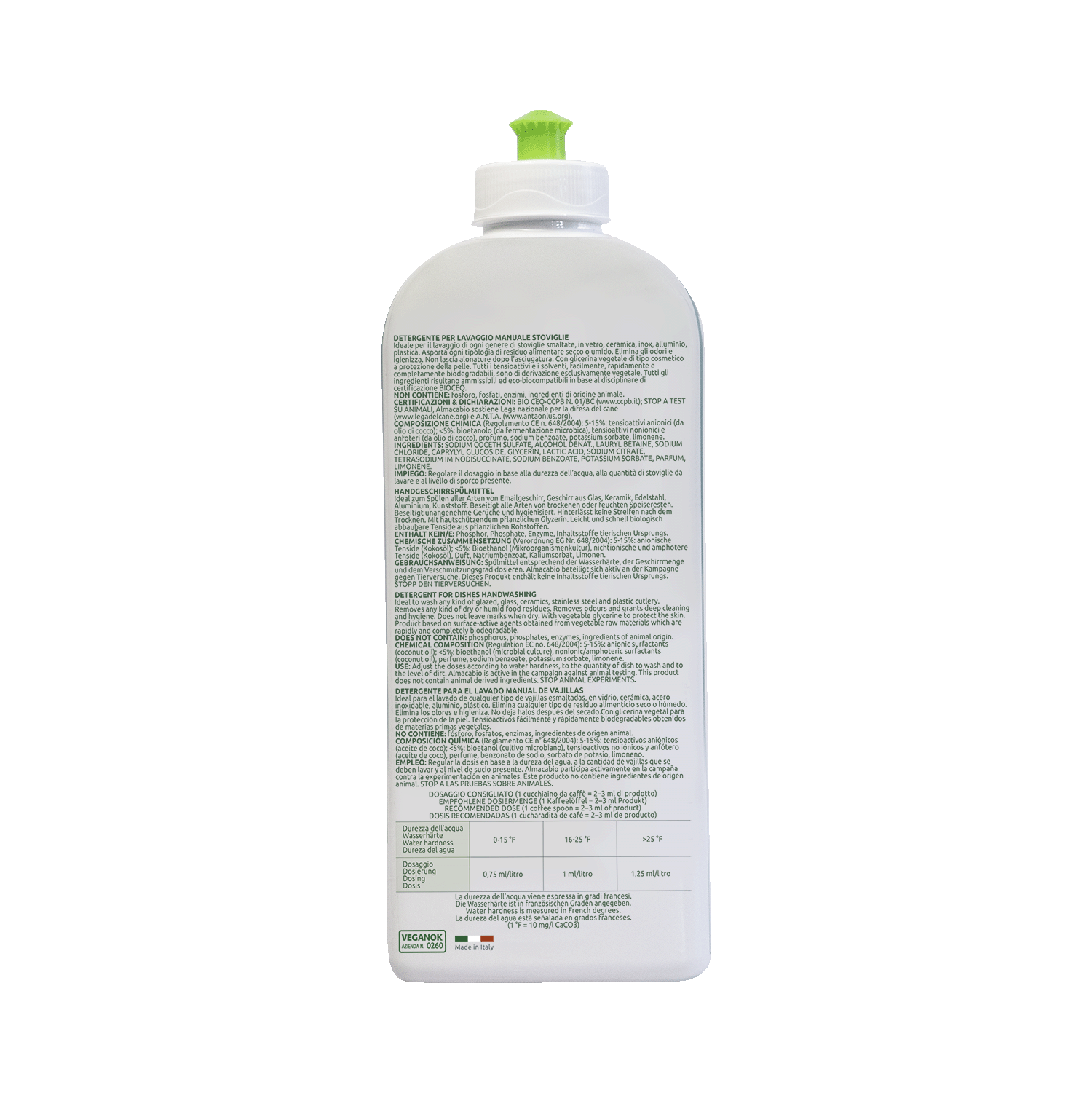 Ideale per il lavaggio di ogni genere di stoviglie smaltate, in vetro, ceramica, inox, alluminio, plastica, porcellana. Asporta ogni tipologia di residuo alimentare secco o umido. Elimina gli odori e igienizza. Non lascia alonature dopo l’asciugatura. Con glicerina vegetale a protezione della pelle. Tutti i tensioattivi e i solventi, facilmente, rapidamente e completamente biodegradabili, sono di derivazione esclusivamente vegetale. Tutti gli ingredienti risultano ammissibili ed eco-biocompatibili in base al disciplinare di certificazione Bio C.E.Q.