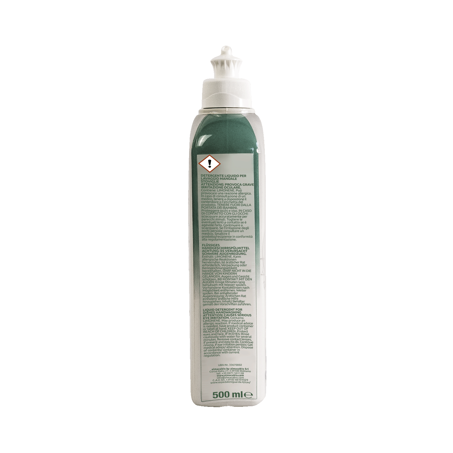 (Regolamento CE n. 648/2004): 5-15%: tensioattivi anionici (da olio di cocco); <5%: bioetanolo (da fermentazione microbica), tensioattivi non ionici e anfoteri (da olio di cocco), profumo, sodium benzoate, potassium sorbate, limonene.